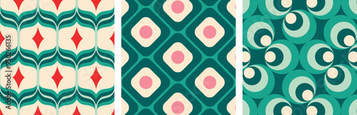 Christmas Retro Patterns Bundle Set in Green, Turquoise Pink, Red and Beige, xmas vector pattern design, 60s and 70s retro aesthetic style
