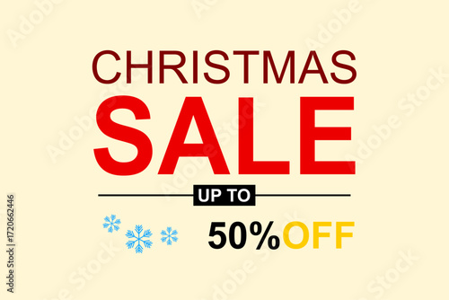 Christmas Sale Up to 50% Off Promotional Banner, Festive Holiday Discount Poster Design with Red and White Winter Theme for Marketing, Online Shopping, and Seasonal Offers