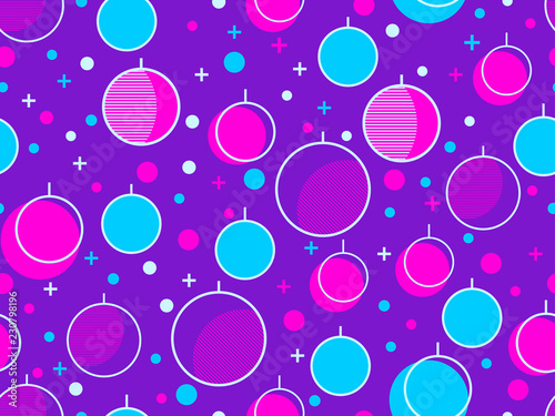 Christmas seamless pattern in memphis style with christmas balls. Great for brochures, promotional material, wrapping paper and wallpapers. Vector illustration