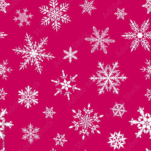 Christmas seamless pattern of complex big and small snowflakes in white colors on purple background
