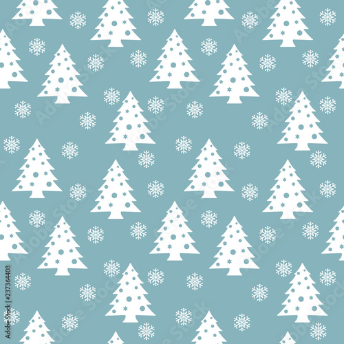 Christmas Seamless Pattern. White Trees On Blue Background. Vector Illustration.