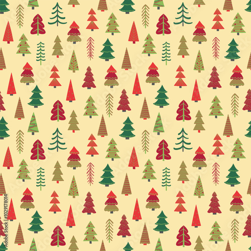 Christmas seamless pattern with cute cartoon tree decorations. Wallpaper design. Vector illustration