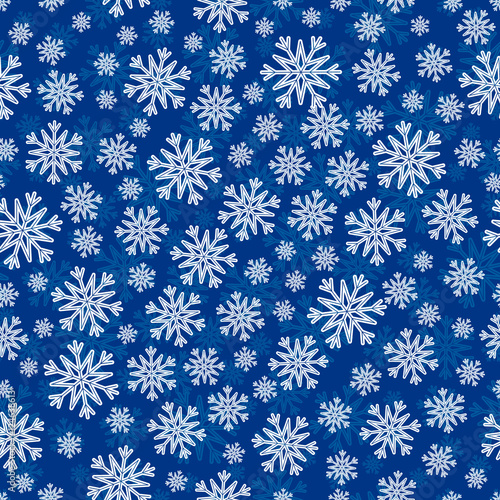 Christmas seamless pattern with white blue snowflakes