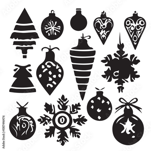 Christmas simple geometric components. Christmas abstract icons designed in a minimalist approach. Christmas tree, snowman, presents, deer, and holiday décor. modern vector flat illustration