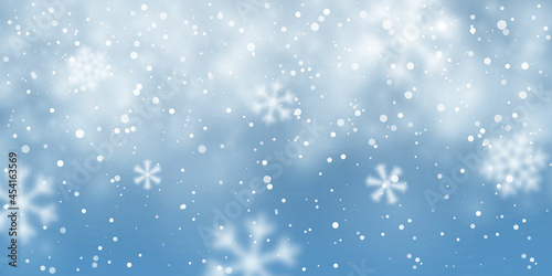 Christmas snow. Falling snowflakes on dark blue background. Snowfall. Vector illustration