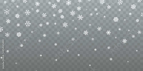 Christmas snow. Falling snowflakes on transparent background. Snowfall. Vector illustration