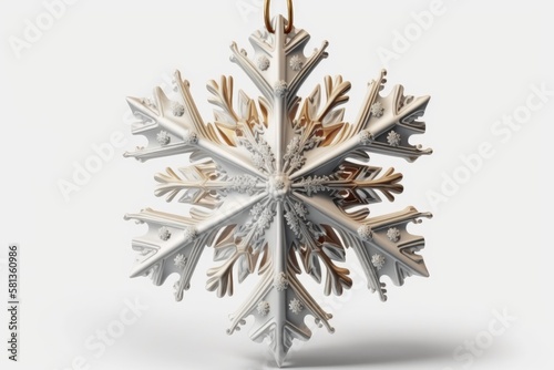 Christmas Snowflake Isolated Ornament, Hanging Snow Flake Decoration, New Year Toy over White Background. Generative AI
