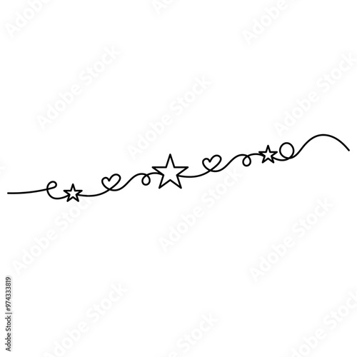 Christmas star single line art, continuous one line drawing of Isolated outline vector icon