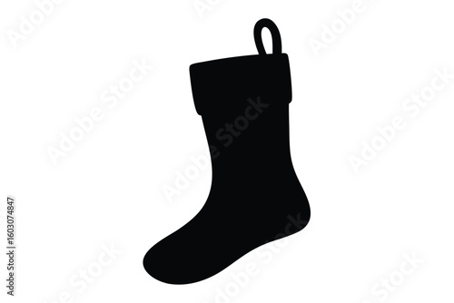 Christmas stocking silhouette vector, Christmas stocking filled with gifts hanging as a festive holiday decoration