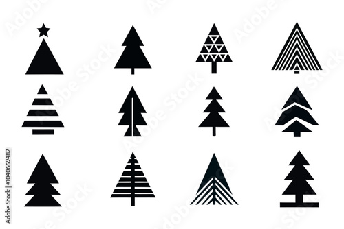 Christmas tree black icons set. Holiday design elements set. Happy New Year vector illustration.