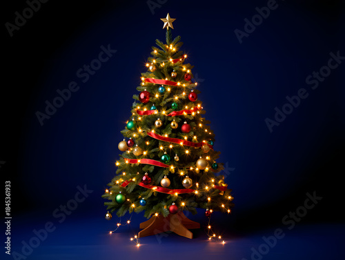 Christmas tree decorated with glowing lights and sparkling stars for a festive winter holiday celebration illustration