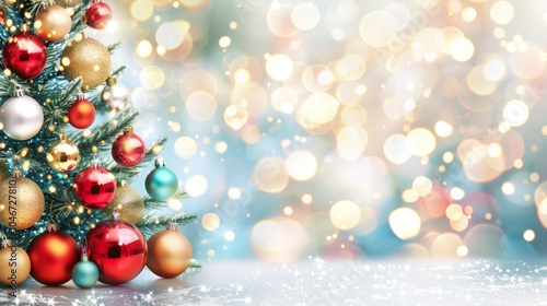 christmas, tree, decoration, holiday, christmas tree, celebration, xmas, fir, star, winter, pine, gift, ball, ornament, green, season, illustration, new, year, snow, present, december, color, gold