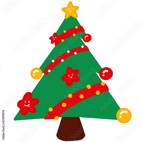 Christmas tree decoration with star and balls isolated on white background. Christmas tree cartoon 3
