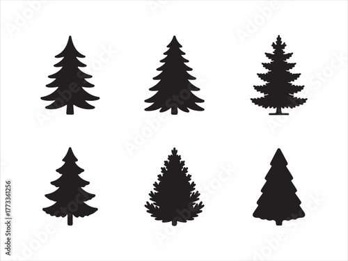 Christmas tree icon set, Pine tree vector silhouette set of Christmas background illustration