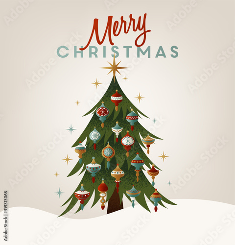 Christmas tree luxury vector greeting card. Winter Merry Christmas illustration