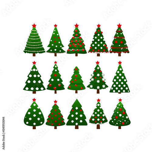 Christmas Tree Set - 18 Christmas Tree Ornaments with Red Baubles, Stars, Lights and Snow
