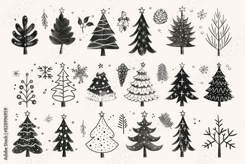 Christmas Tree Set. Hand Drawn Elements for Holiday Celebration