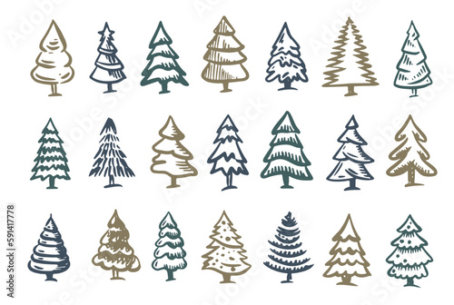 Christmas tree set, Hand drawn illustrations.