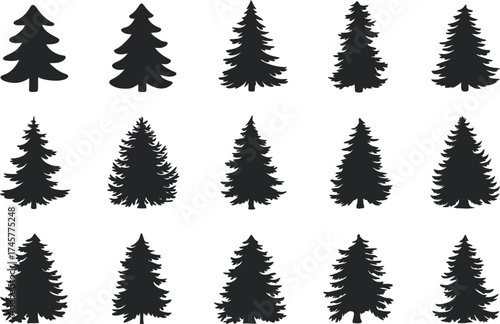 Christmas tree silhouette pattern with black and white pine trees festive holiday vector illustration winter nature background