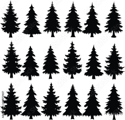 "Christmas Tree Silhouette Vector Collection in Minimalist and Festive Styles for Holiday Design Projects"
