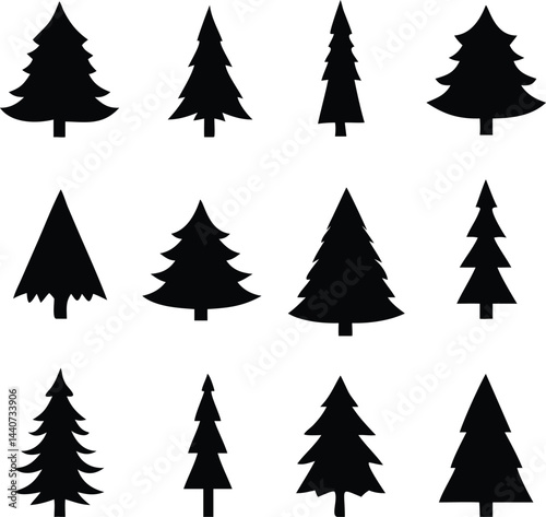 "Christmas Tree Silhouette Vector Collection in Minimalist and Festive Styles for Holiday Design Projects"