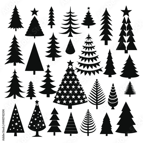 "Christmas Tree Silhouette Vector Collection in Minimalist and Festive Styles for Holiday Design Projects"