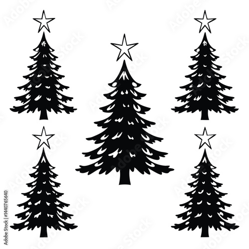 "Christmas Tree Silhouette Vector Collection in Minimalist and Festive Styles for Holiday Design Projects"