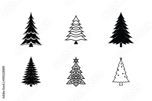 Christmas tree silhouette vector illustration, Set of Christmas tree silhouette