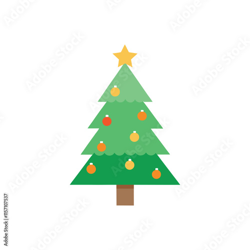 "Christmas Tree Vector Illustration – Festive New Year Icon Decorated with Lights"