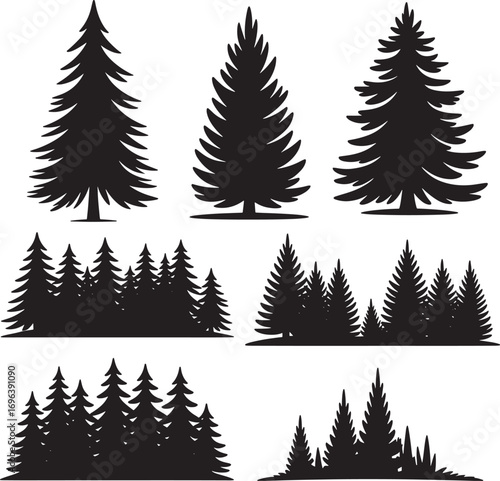 Christmas Tree Vector Silhouette Set – Pine, Fir, Spruce, Evergreen Nature Icons for Winter and Holiday Design