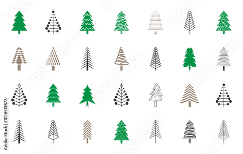 Christmas tree vector silhouettes. Xmas pine tree icon illustration.