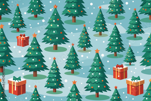 Christmas tree winter holiday illustration with snow and snowflake pattern