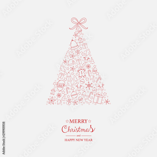 Christmas tree with festive elements and wishes. Xmas greeting card. Vector