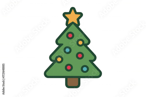 Christmas tree with star and colorful ornaments representing holiday season and winter celebration, transparent background