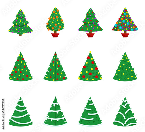Christmas trees. Can be used for printed materials - leaflets, posters, business cards or for web. Colorful winter trees collection for holiday xmas and new year. Vector illustration.