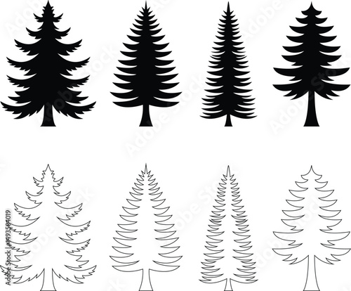 Christmas trees collection, Collection of evergreen tree silhouettes