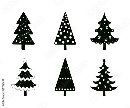 Christmas trees. Set of Christmas trees silhouettes. Cartoon flat style. Vector illustration