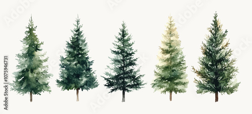 Christmas trees Vector watercolor illustration,Forest, fir trees, pine trees, woods watercolor illustration,festival set