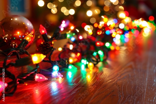 Christmas wooden table holiday background