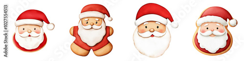 Christmas-themed gingerbread cookies in various Santa designs, white isolate background,Transparent background.