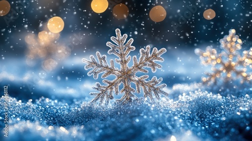 Christmas-themed snowflakes fluttering softly, creating a peaceful winter scene.