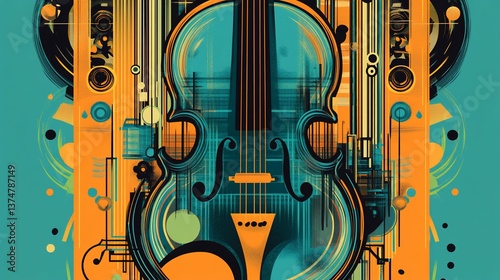 Chromatic Harmony Abstract Violin Art Suitable for Art Exhibition