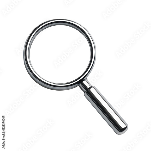 Chrome magnifying glass icon with transparent background, perfect for investigation or research concepts