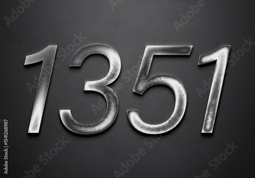 Chrome metal 3D number design of 1351 on grey background.