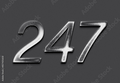 Chrome metal 3D number design of 247 on grey background.