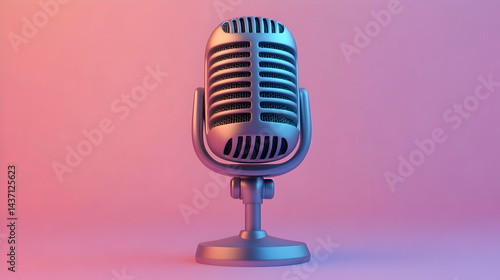 Chrome Vintage Microphone on Gradient Pink Background Featuring Stage Equipment Radiant with Balanced Lighting in Studio for Audio Recording