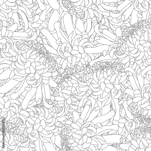 Chrysanthemum Outline Flower Seamless Background