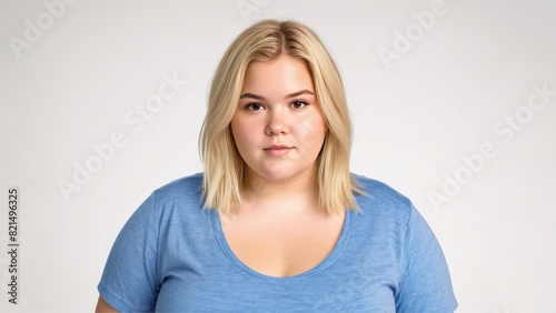 Chubby blonde woman on a light isolated background