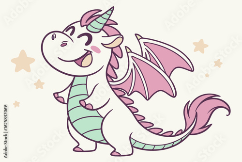 Chubby cartoon pegasus-dragon hybrid, pastel vector design, small wings, happy face