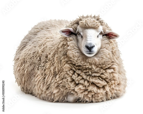 Chubby Sheep Resting Peacefully on White with Copy Space